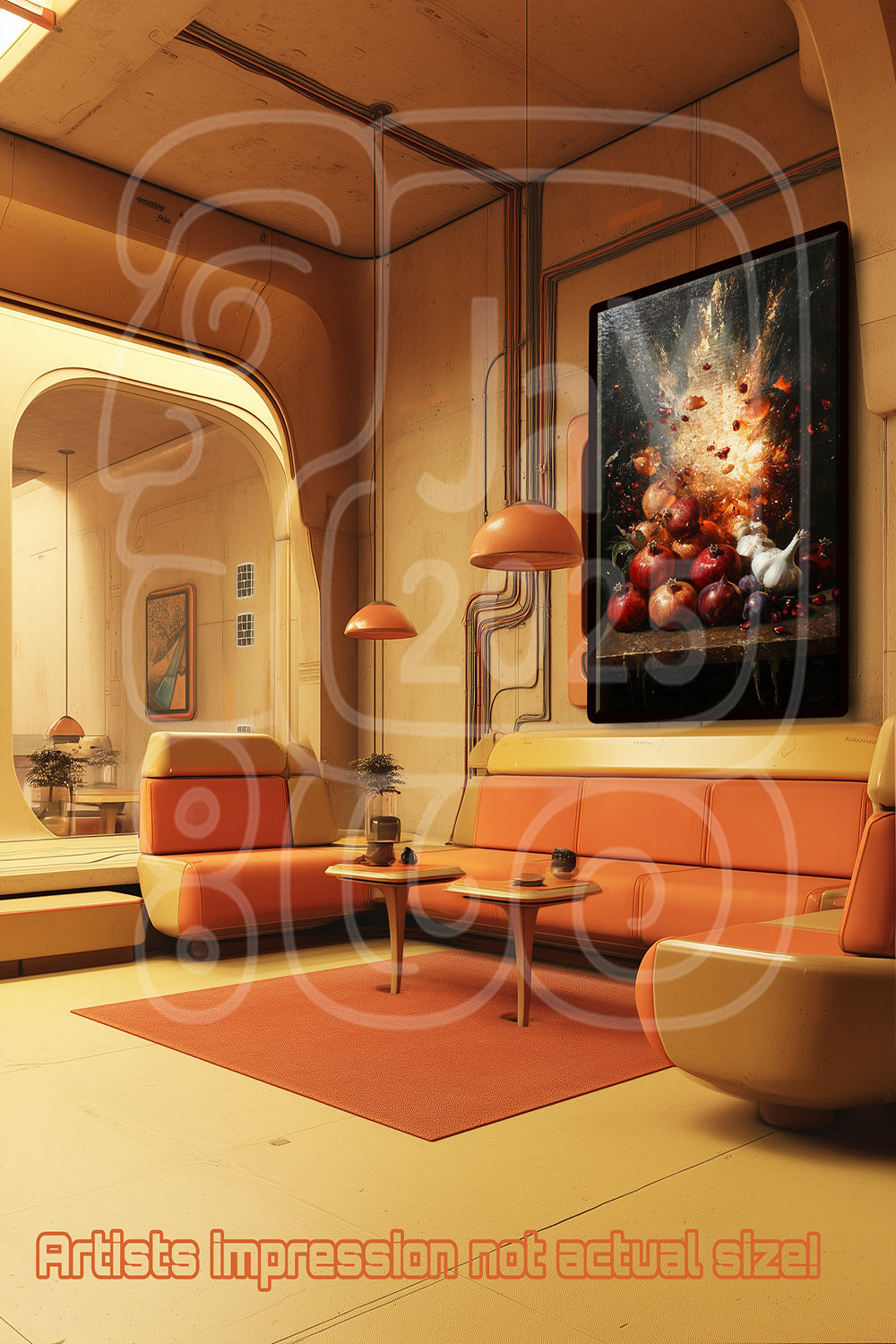 Bring dynamic energy and classic richness to your space with LeoNardos Pomegranates a stunning still life with a twist. This 70cm x 100cm fine art print captures the precise moment of culinary chaos, as pomegranates, garlic, onions, and plums erupt in a fiery, painterly blast. Rich with deep reds, golden tones, and dramatic lighting, it fuses traditional still life elegance with modern surreal intensity. Printed on premium archival matte paper for a luxurious finish, this piece adds bold sophistication to kitchens, dining rooms, or contemporary art collections.